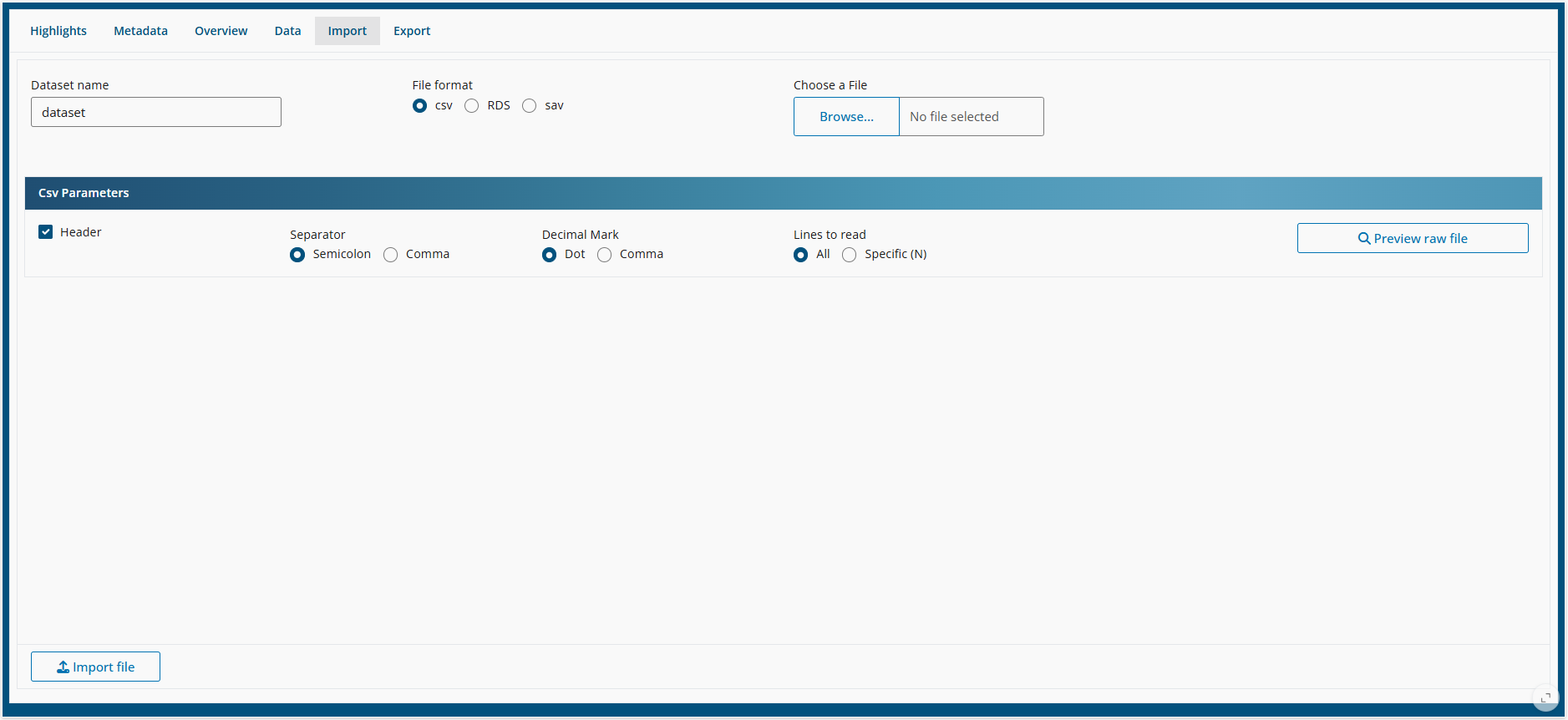 Here it is possible to import datasets from outside of the Spada package.